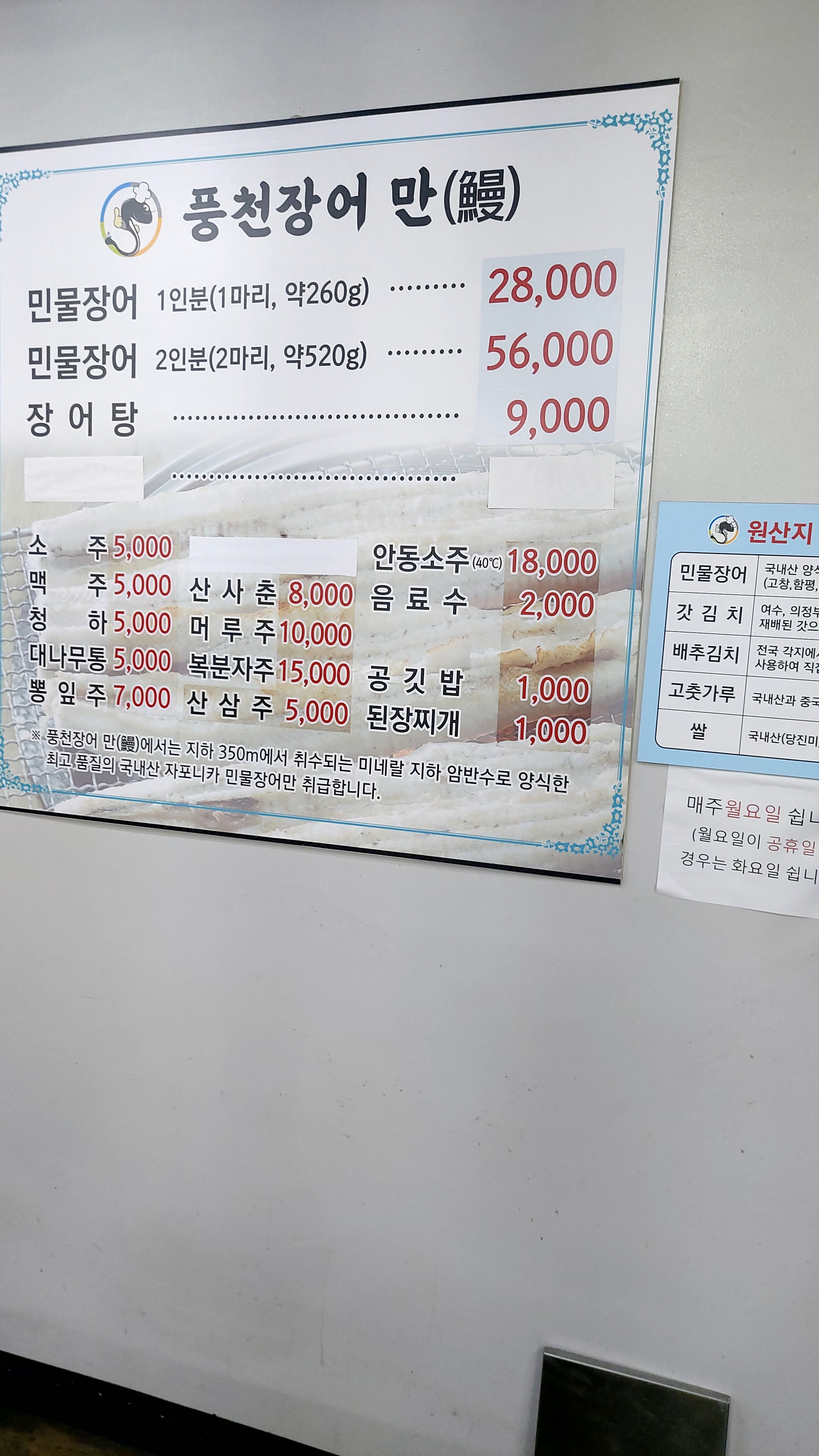 - 일품풍천장어
